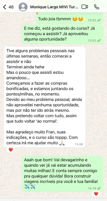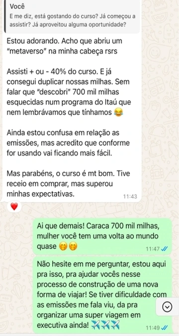 Nossos alunos já economizaram milhares de reais em passagens aéreas e agora desfrutam de viagens confortáveis e econômicas. Veja o que meus alunos estão falando do método que já transformou suas vidas.